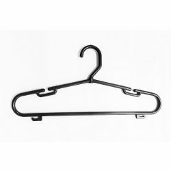 Cabide Tradicional com CavaModelo: Tradicional com Cava Cor: Preto, Branco ou Transparente Peso: 85 gramas. Medidas: Comprimento x Expessura x Altura: 43cm x 0,8cm x 21cm